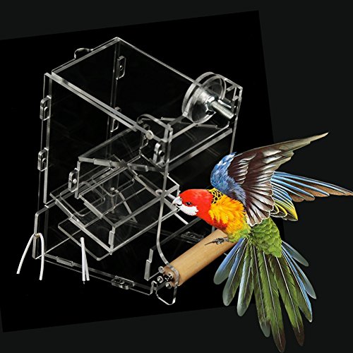 Zwindy Mangiatoia per Uccelli, Gabbia per Semi di Uccelli pappagalli in Acrilico Trasparente 1pc, Gabbia per mangiatoia Automatica, Giocattolo, per Piccoli Uccelli, parrocchetto(S)
