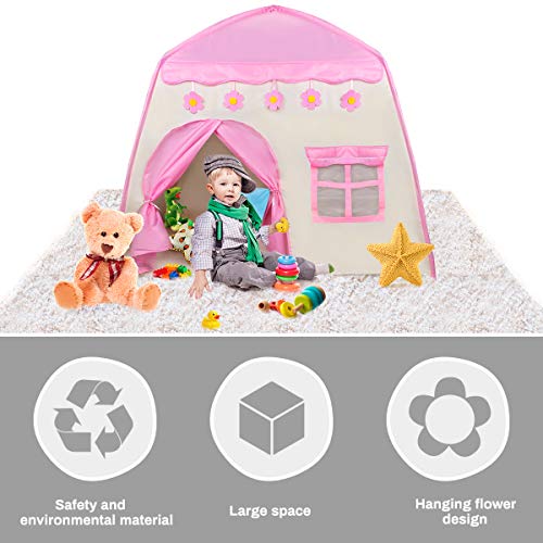 【Desig agitatamente infantile】 - La casa da gioco per tende per bambini è progettata con molti fiori intorno alla tenda che piacciono alla piccola principessa. Questo è un luogo perfetto per fungere da sala da tè per bambini, palcoscenico, sala lettura o campeggio.