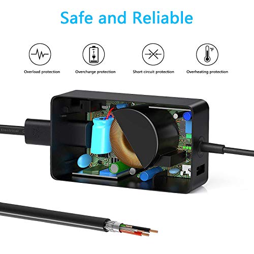 ZWOOS Caricatore Compatibile con Surface Pro, Alimentatore 44W 15V 2.58A per Surface Book, Surface Pro 3/4/5/6 Adattatore di Caricabatterie per Surface Go (44W)