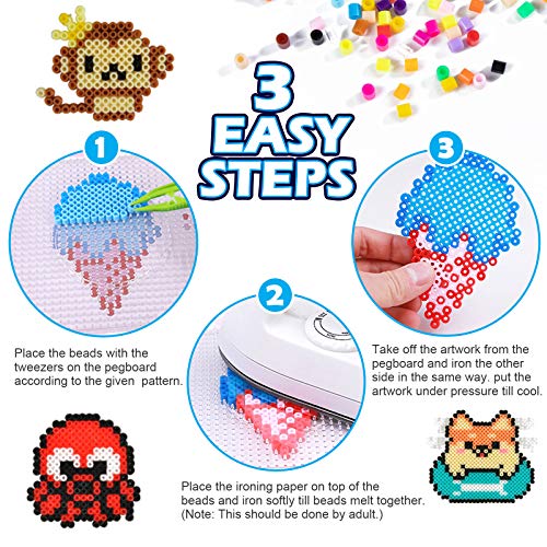 【Facile da Usare】È sufficiente posizionare i chicchi del colore corrispondente sull'asse in base al motivo, stirando e quindi attendere 30 ~ 60 secondi, il motivo creato si attaccherà. (NOTA: il ferro non è incluso nel pacchetto)