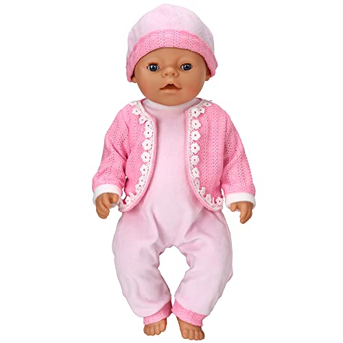 ZWOOS Vestiti per Bambole per New Born Baby Doll, Abitini Lana con Cappello per Bambolotti 35-43 cm (Rosa)