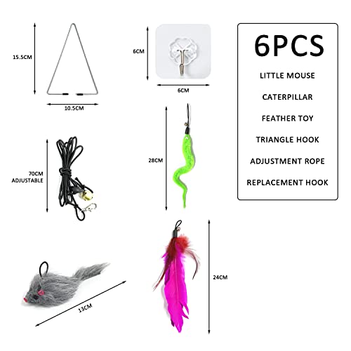 La confezione include: 1 set di ganci triangolari per gatti da appendere, 1 gancio, 2 giocattoli di ricambio, testa di ricambio aggiornata, può sostituire una varietà di giocattoli, attirare l'attenzione del gatto quando oscilla