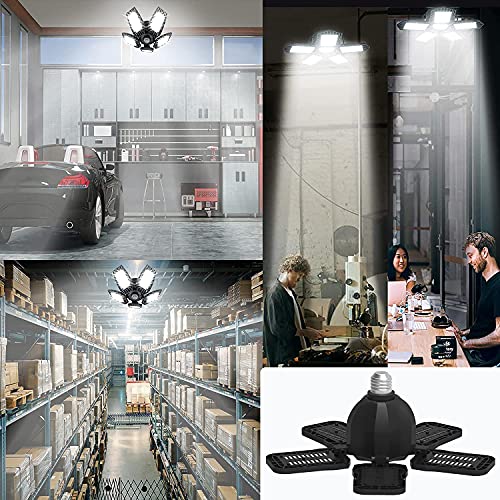 Design regolabile del portalampade LED: con 5 pannelli, ogni portalampada è regolabile a 90 gradi, design con luce LED grandangolare per garage, è possibile regolare la direzione della luce secondo le vostre esigenze e coprire un'area di illuminazione a 360°.