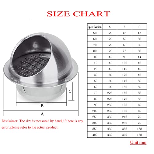 ZXCASDF Griglia di Ventilazione in Acciaio Inox,Griglia di Ventilazione,Toro Tondo in Acciaio Inossidabile,per bocchette di Ventilazione a Parete,Cucina,Bagno,Camera da Letto,120mm/4.72in