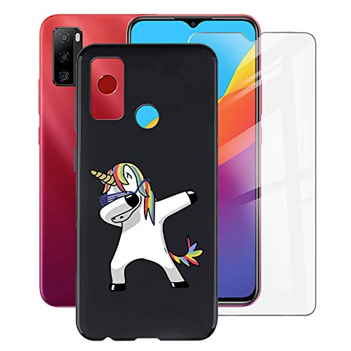 ZXLZKQ Custodia + Vetro Temperato Film per Ulefone Note 10 (6.52 Pollice), Nero Morbida Silicone Cover Antiurto TPU Protettiva Case e HD Glass Pellicola Protettiva - WM125