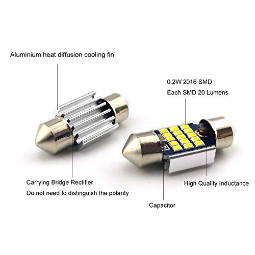 Zxreek 31mm 3W 1.22" DE3175 6428 15 2016 SMD 300 Lumens Canbus Error Free Lampadine Siluro LED Auto per interni Luci per auto targa Cupola Porta Courtesy Festoon Xenon White 12-24V (confezione da 4)