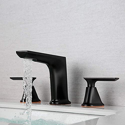 ZYDSN Doppio Manico Rubinetto Miscelatore per lavabo a Tre Fori Split Bagno Rubinetto in Ottone Nero Rubinetti Calda e Fredda Finitura Olio strofinato Finitura Bronzo,Blackfaucet