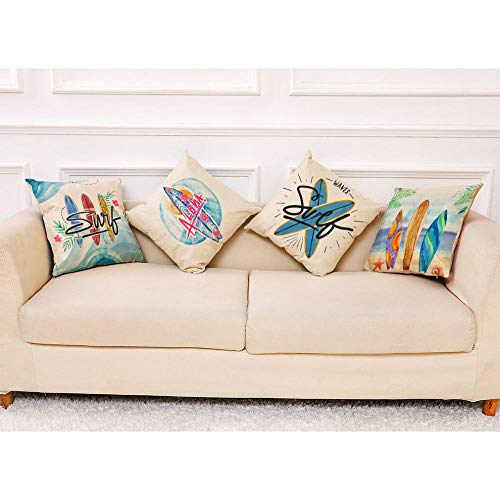 ZYFSKR Fodera per Cuscino Cotone E Lino Federa per Cuscino Cuscini per Divano Federa da Surf Estivo per Cuscino per Divano Camera da Letto Auto Casa 4 Pezzi 50X50Cm
