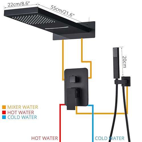 La combinazione doccia con installazione nascosta dal design moderno rende il tuo bagno più moderno ed elegante, puoi installare il soffione a pioggia e il soffione a mano dove preferisci, dipende solo dalla posizione del tubo dell'acqua