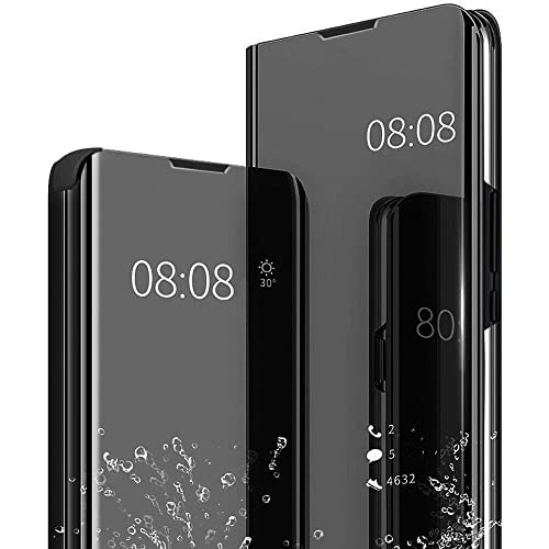 ZYIMOU Cover Compatibile con Samsung Galaxy S22 Ultra Specchio Custodia, Intelligente Flip Silicone Clear View Case in Pelle Bumper Folio Protector Copertura Mirror Supporto Cover Shell, Nero