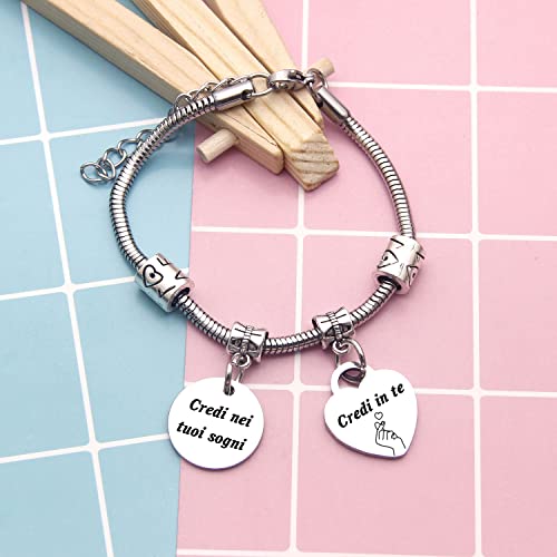 ZYMGUO Regalo Amicizia Bracciale da Donna con Ciondolo In Acciaio,Credi nei tuoi sogni,Credi in te. Misura regolabile Incisione Argento Braccialetto Regalo Compleanno