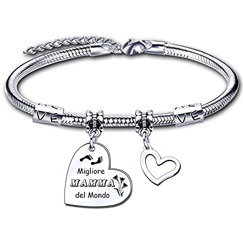 ZYMGUO Regalo Mamma Bracciale Braccialetto Donna Ciondolo Con Incisione"Migliore mamma del mondo"per Mamma Regali di Compleanno,Regali di Natale Regalo per la festa della Mamma