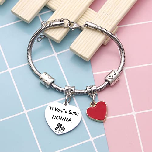 ZYMGUO Regalo Nonna Bracciale Braccialetti Donna Ciondolo Argento con Incisione"Ti Voglio Bene Nonna"Regali di Famiglia Regali di Compleanno