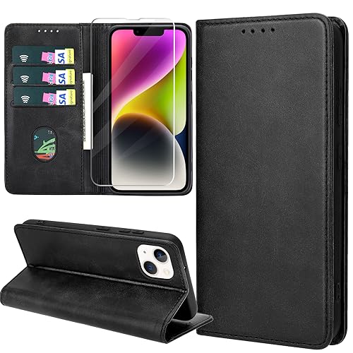 【Compatibile con iPhone 14】- Custodia per cellulare in pelle PU premium iPhone 14 con pellicola protettiva, funzione stand e slot per schede, compatibile con il telefono iPhone 14. Attenzione a non acquistare prodotti incompatibili.
