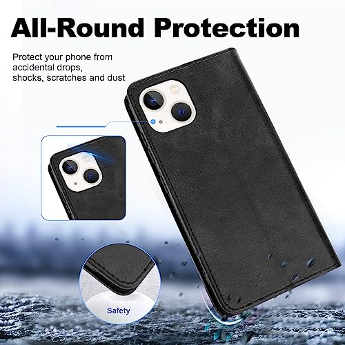 ZYMOU Cover per iPhone 14, Custodia a Premium Pelle PU Portafoglio Flip Libro Libretto Caso [Protezione Completa] [Slot per Scheda] [Funzione di Supporto], Nero