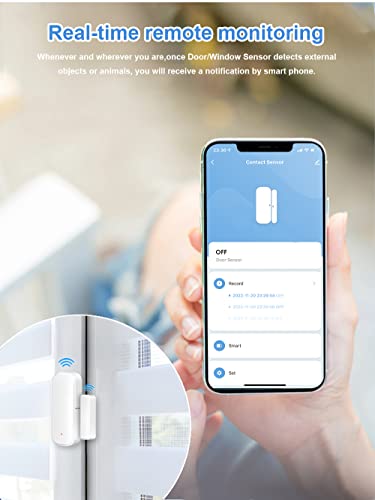 * 【Connessione WiFi】Funziona solo con WiFi a 2,4 GHz, il sensore della porta verrà attivato una volta aperta o chiusa e riceverai una notifica di allarme immediata sul telefono entro 2-8 secondi. Che tu sia a casa o in viaggio, puoi facilmente monitorare il sensore della porta tramite una connessione WiFi intelligente.