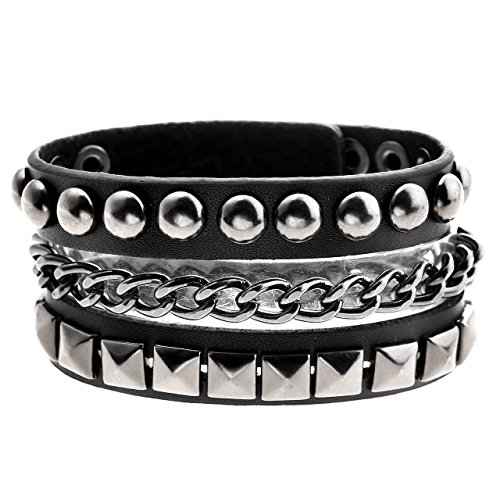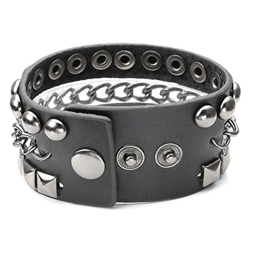 Zysta - Bracciale in vera pelle, con borchie, unisex, punk rock, nero