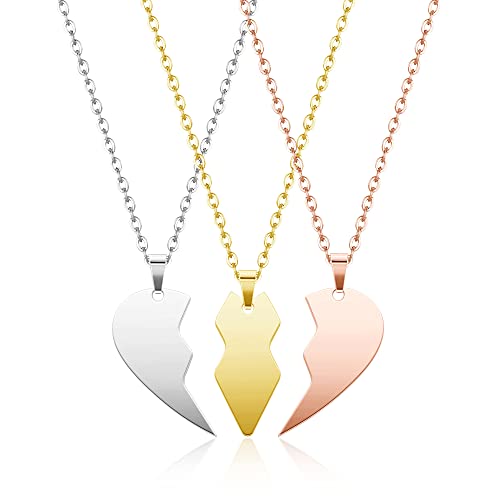 Zysta Collana dell'Amicizia con Cuore Spezzato per 3 Persone, Collana Puzzle Diviso Incisione Best Friends Forever 3 Colori in Acciaio Inox, Collana Distanza Personalizzato Nome Regalo per Amiche