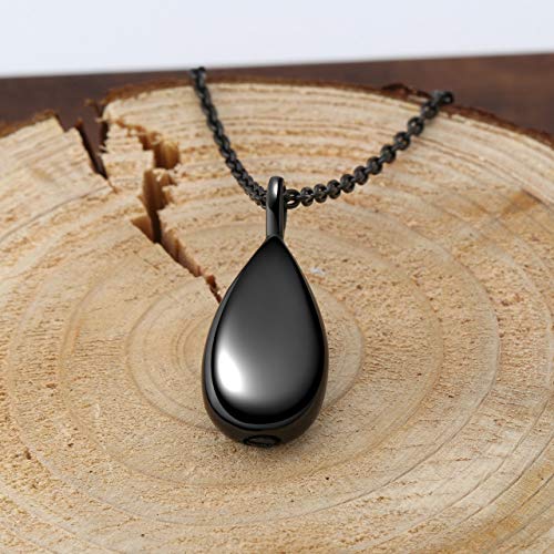 Zysta Collana di Cremazione con Ciondolo a Forma di Goccia, Collana Urna Apribile Impermeabile per Ceneri di Animali Umane, Collana Memoriale Unisex in Acciao Inox Porta Profumo Capelli Dente (Nero)