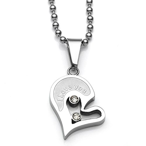 Zysta Collana Set Pendente a Forma di Cuore Diviso Spezzato in Due Collane Argento con Strass zircone da Uomo e Donna I Love You Gioielli in Acciaio Inossidabile