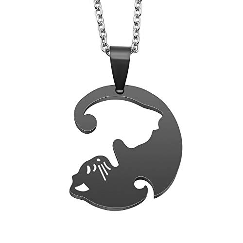 Zysta Collane Coppia Ciondolo Gatto Divisibile per Lui e Lei, BFF Collane Amicizia Puzzle Diviso Yin e Yang per 2 Persone, Collana Distanza a Catena Nero Oro Rosa Regalo Fidanzati Migliori Amici