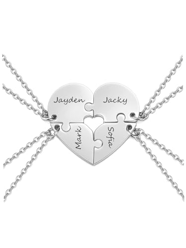 Zysta BFF Collane Nomi Persoanlizzabili per 4 Migliori Amici Collane Amicizia Incisione Personalizzate Iniziali Cuore Spezzato Collana Distanza Puzzle Divisi Sorelle Compagne (4pz Cuore Vuoto Argento)