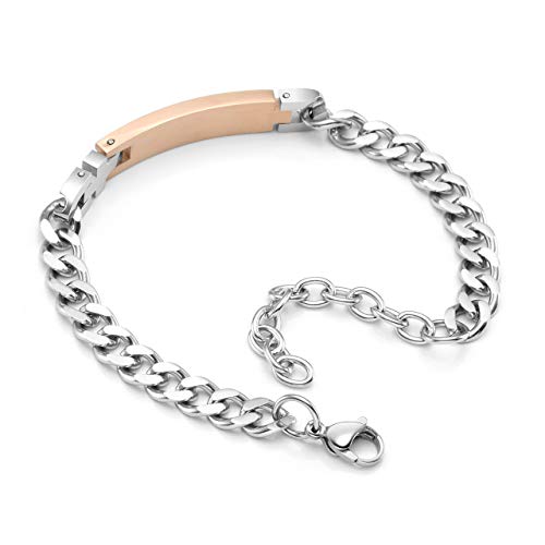 Zysta - Coppia di bracciali in acciaio Inox, unisex, con targhetta con incisioni “Her King” + “His Queen” e con zircone, regalo ideale per innamorati