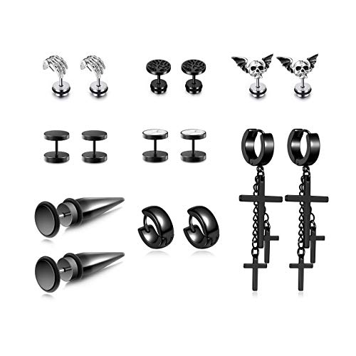 Zysta 8/10 Paia Set Orecchini Uomo Donna in Acciaio Inox Orecchini Cerchio Huggie Piercing Clip Pendenti Lunghi Croce-8paia nero