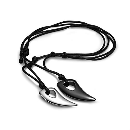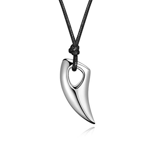 Zysta 2 pezzi collana in acciaio e pelle regolabile per uomo e donna Argento+Nero