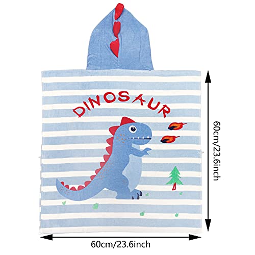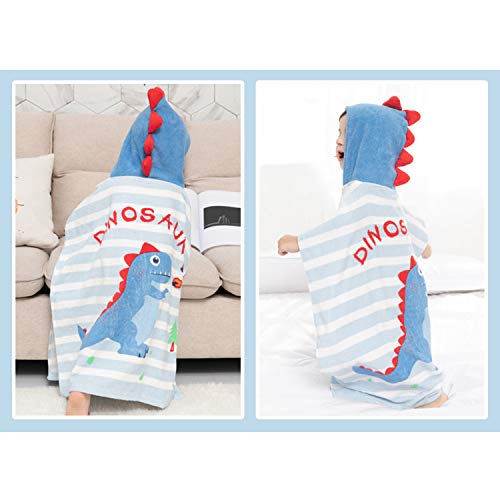 ZYUPHY Asciugamano con Cappuccio Bambini Poncho da Bagno Bambino Poncho Cotone Simpatico Cartone Animato Ragazzo Ragazza Spiaggia Nuotare Bagno Accappatoio, Blu Dinosauro