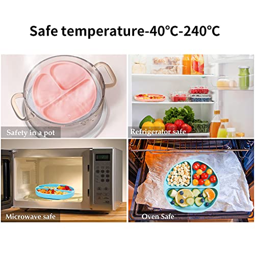 ZYUPHY Piatti Bambini Bebè Silicone Piatto con Ventosa per Bambini con Cucchiaio e Forchetta Piatto Svezzamento Ventosa in Silicone Senza BPA Lavabile in Lavastoviglie, Adatto per il Microonde