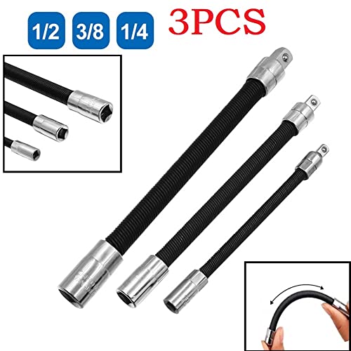 ZYWUOY 3 pz Chiave Elettrica Barre di Prolunga, 1/4 3/8 1/2 Driver Elastico Flessibile Presa Lunga Adattatore per Asta di Prolunga Chiave A Cricchetto