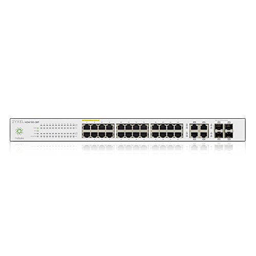 ZyXEL Nebula Cloud Managed Switch a 24 Porte Gigabit Poe + Layer 2, 4X SFP, 375W Power Budget (in Bundle con 1 Anno di Licenza Enterprise) [NSW100-28P]