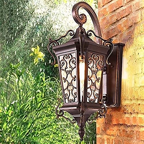 Zziyj Applique Impermeabile/For Ammissione/Lanterna,Decorazione Esterna Brass Black Metal Color,Clear Glass Deco Lattice,Portalampada E27 Edison