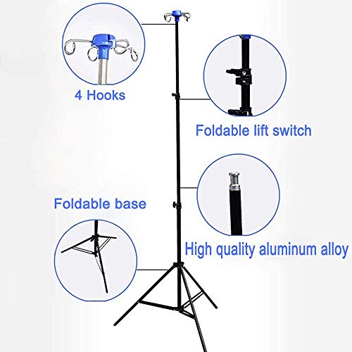 ZZYYZZ Supporto per infusione Pieghevole con Supporto per flebo Retrattile Portatile 4 Ganci per Assistenza domiciliare, Ospedale e Clinica per Anziani