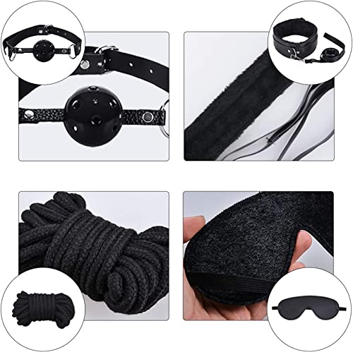✅Include vari giocattoli: 1 paio di pinze, 2 paia di collari in pelle con corde, 1 collana, 1 bastoncino di piume, 1 fibbia a croce, 1 corda, 1 frusta di cuoio, 1 pallina, 1 benda sull'occhio, ecc.